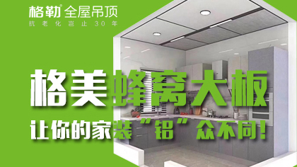 蜂窝大板吊顶,是由格勒自主研发、生产与销售的大板吊顶品牌产品。产品规格多样,整体装饰简约、美观品味。打破传统的小方块集成吊顶的视觉效果,具有保温隔音、防污防潮、私人定制等顶部空间完整解决方案。