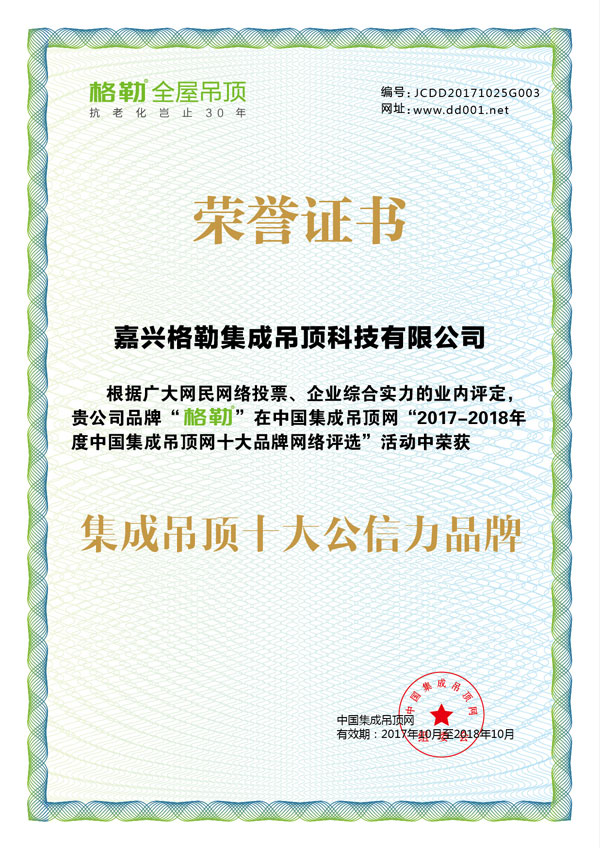 6月被授予“互联网吊顶第一品牌”;被授予“中国绿色环保产品”;