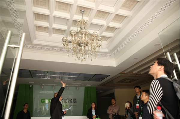 招商会当天行程安排得相当紧凑,意向客户一行人在公司招商人员陪同下上午先是参观成品仓库、公司生产流水线、公司办公区域,接着是公司的680平米新展厅。该展厅是格勒公司自2014年下半年开始着手实施的一个大项目,主要用于格勒公司展示全屋吊顶出样,来的早不如来得巧,该展厅是第一次对外开放,虽没有完全竣工,仍难掩大空间、大格局的气度。
