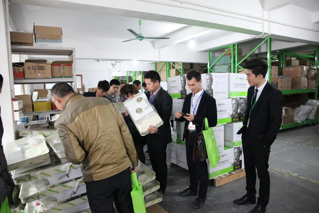2016年4月12日早上9时,参会人员在大巴的接送下来到格勒厂区参观,格勒管理层和市场部的工作人员早已列队迎接,在工作人员的带领下,参会人员参观了公司的发货区域和生产车间,同时简单介绍了格勒发货的速度和流程,分别参观了扣板生产车间和电器生产车间,对产品的生产流程有一个初步的了解。同时还对参会人员介绍了公司架构和人员组成,参观了个部门办公区域,向参会人员展示了公司办公人员的朝气蓬勃的精神面貌。