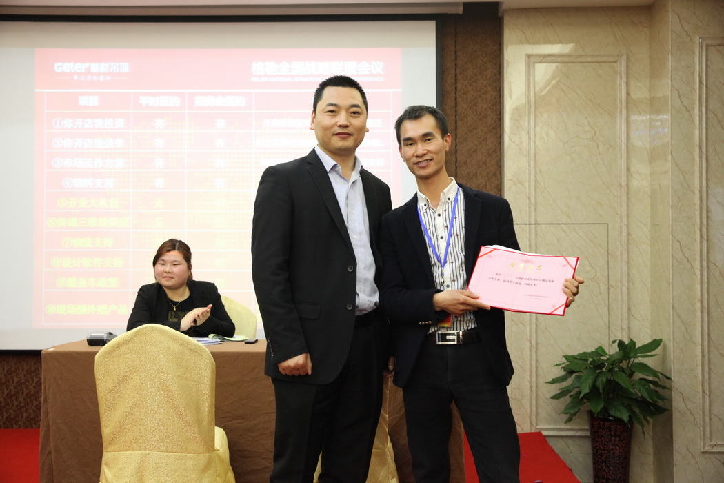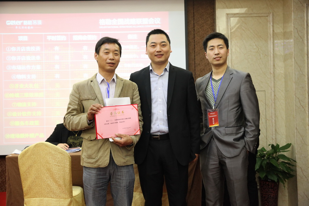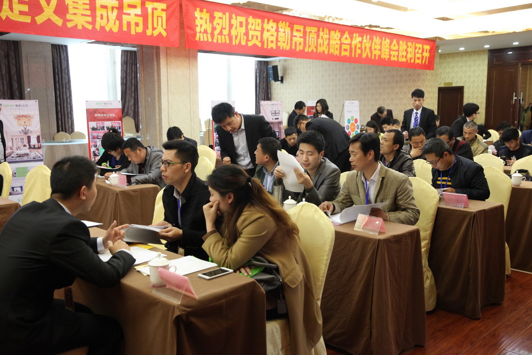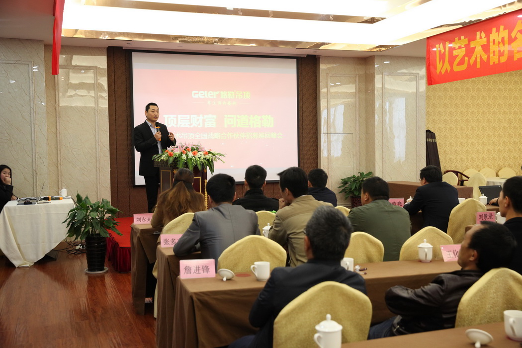 下午的招商会议于12:30准时在主持人的宣布声中拉开帷幕,首先是开云网页版登录入口总经理徐惠峰作大会开场致辞并分析了目前吊顶市场的概括,会上还详细介绍了格勒集成吊顶最新的三维软件和公司DRP系统,着重介绍了格勒天猫O2O战略,接着便是招商经理为参会人员介绍格勒吊顶对经销商的市场扶持和优势政策,为参会者细致地描述扶持政策,你开店我投资,你开业我送单。台下与会人员听后更是喜上眉梢,这无疑是让更多的加盟商看到加盟格勒的前景。各与会人员在对格勒有了一个整体的认识之后,接二连三上台与格勒签约,在音乐声中,贵州铜仁碧江、湖南郴州桂阳、安徽亳州谯城区江西上饶弋阳县、安徽淮南、江苏无锡宜兴、江苏常州武进区等地区与会人员与格勒真正成为相亲相爱的一家人,相信在未来的日子里定能勇攀财富的高峰!