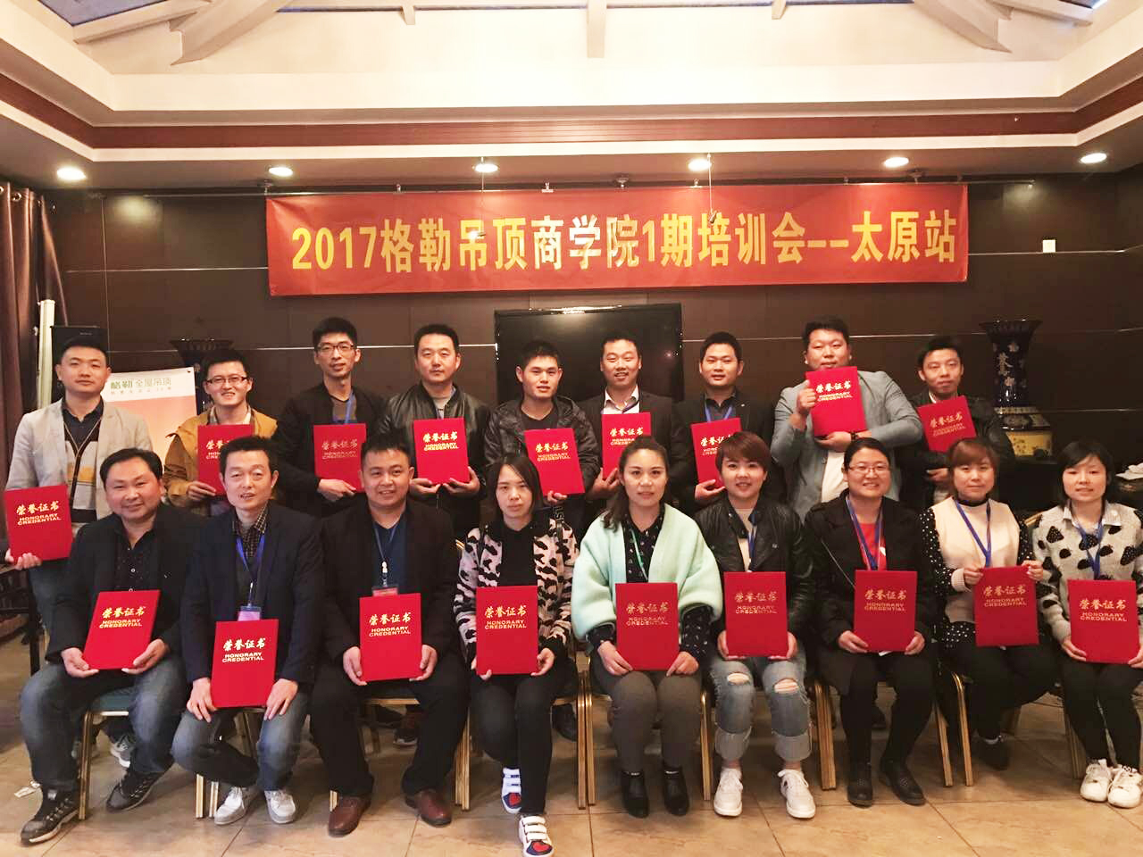 为深入推进格勒全屋吊顶优秀经销商团队建设,3月19日-31日,2017格勒吊顶商学院1期培训会--太原站启幕。公司市场总监张总、数位区域经理及40余位优秀经销商人参加了培训。