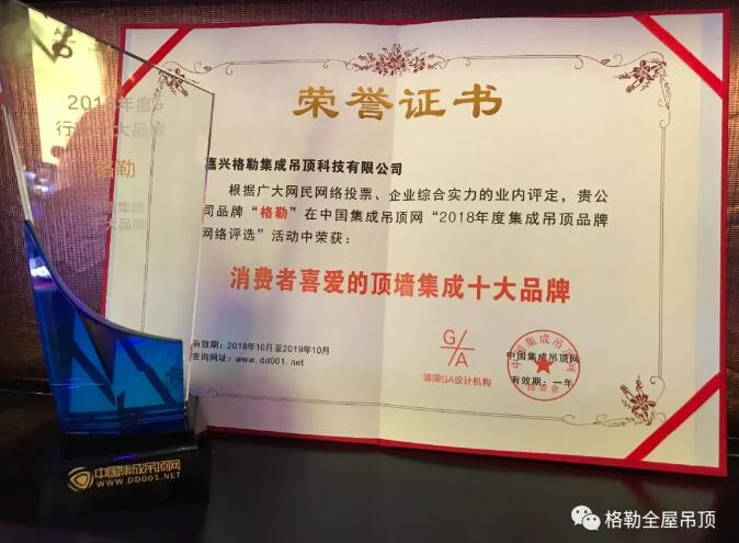 格勒全屋吊顶坚持诚信经营,使得格勒赢得了超过数百万消费者用户的信赖;也正是拥有了这一批庞大的忠实消费者,才铸就了格勒今天的传奇荣耀。为格勒的荣誉加冕,为您的忠诚点赞!