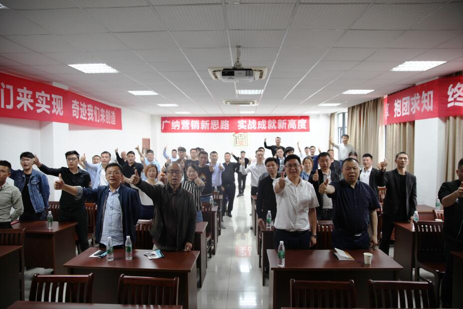 5月14日,来自全国的经销商家人在海盐县党校相聚,格勒吊顶总经理朱总为大家的到来表示衷心的感谢。朱总说我们跟着党走,党正在发展,格勒正在成长,日益强大,我们以“崇高的理想,创新的意识,无谓的勇气”乘风破浪,与时俱进!公司就像一面旗帜,在机遇和挑战并存的国内外条件下指引着格勒家人前进!